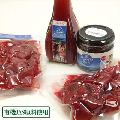 ビーツ加工品3種セット 「食べて紅2袋」・「美ー酢1本」・「いれて紅1個」 (北海道 オホーツク高橋農場) 有機ビーツ使用 産地直送